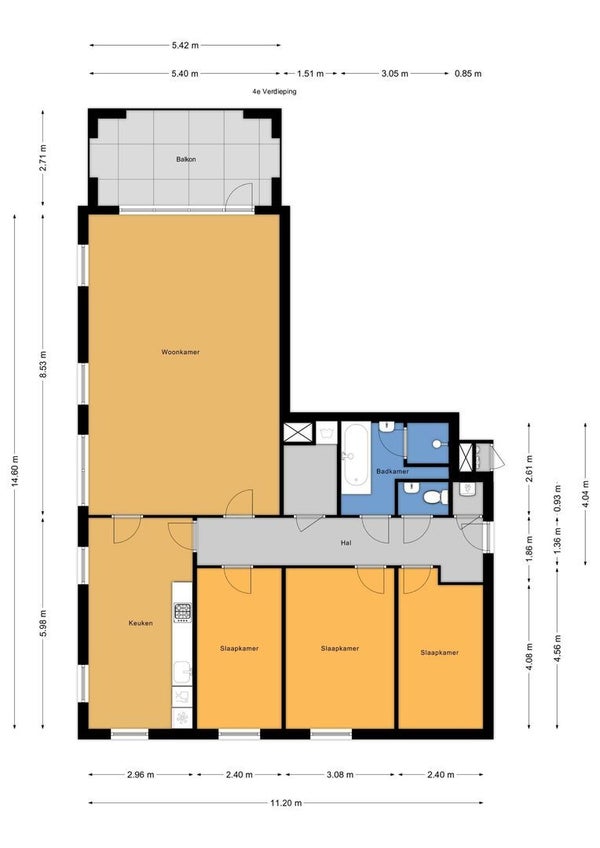 - De galerijflat heeft een woonoppervlakte van 128 m² en beschikt over 4 kamers, waarvan 3 slaapkamers;