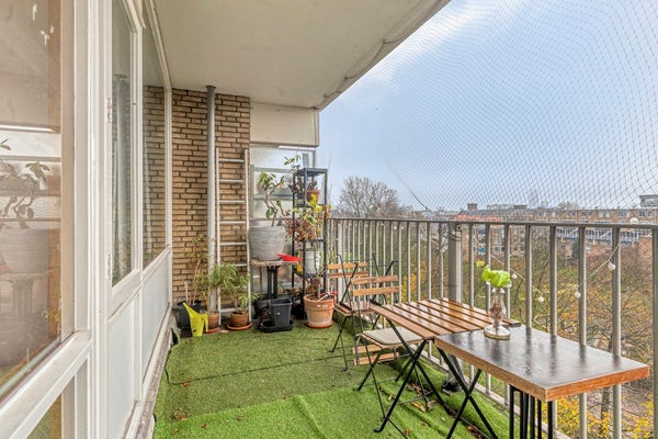 De woning ligt op de 5e verdieping en beschikt over een fijn groot balkon aan de achterzijde op het zuiden en een berging in de onderbouw.