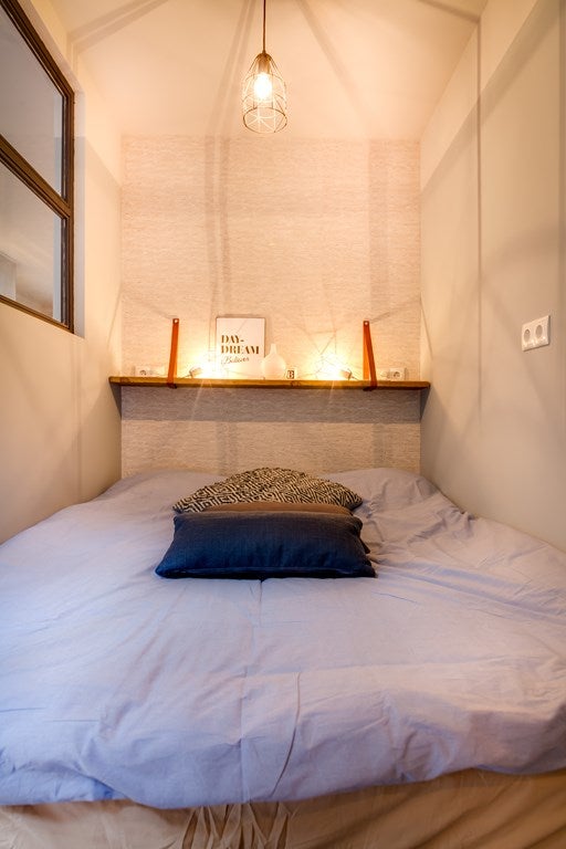 • De benedenwoning heeft een woonoppervlakte van 32 m² en beschikt over 2 kamers, waarvan 1 slaapkamer;