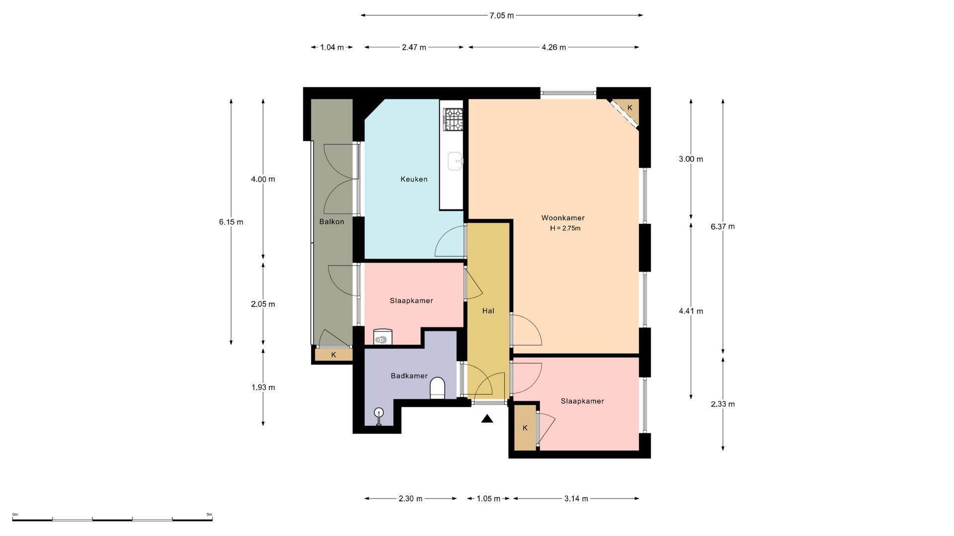 - De galerijflat heeft een woonoppervlakte van 56 m² en beschikt over 3 kamers, waarvan 2 slaapkamers;
