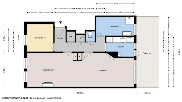 - De bovenwoning heeft een woonoppervlakte van 71 m² en beschikt over 2 kamers, waarvan 1 slaapkamer;
