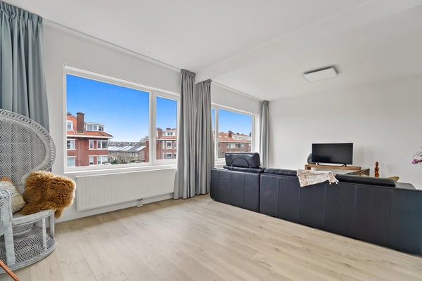 Indeling: Haags portiek met trap naar de eerste etage. Entree woning, hal met meterkast. Trap naar de tweede etage. Entree woning via stalen deur. Gang met vaste inbouwkasten en toegang tot de prachtige woonkeuken. De keuken is van alle gemakken voorzien zoals moderne gaskookplaat, een Quooker, een vaatwasser, afzuigkap, oven en deur naar het balkon. Eetkamer gelegen aan de achterzijde met schuifpui naar het balkon voorzien van bergkast. De L-vormige woonkamer is royaal opgezet en beschikt over een voormalige en-suite, wat zorgt voor een speelse indeling met een doorzonkarakter. Dankzij de grote ramen is er een overvloed aan natuurlijk licht. Terug in de gang vindt u een zeer ruim toilet. Trap naar de tweede woonlaag. Zeer ruime overloop met toegang tot de royale slaapkamer met grote dakkapellen met de mogelijkheid tot het creëren ren van meerdere slaapkamers. Terug op de gang bevindt zich een separaat toilet, wasruimte en badkamer. Via vlizotrap toegang tot de vliering voorzien van dakramen met veel bergruimte. De moderne badkamer is voorzien van een inloopdouche, wastafelmeubel en een handdoekradiator.