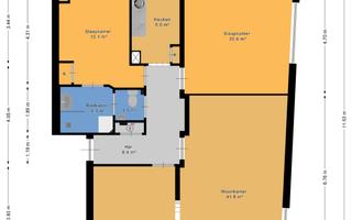 - De galerijflat heeft een woonoppervlakte van 101 m² en beschikt over 4 kamers, waarvan 2 slaapkamers;