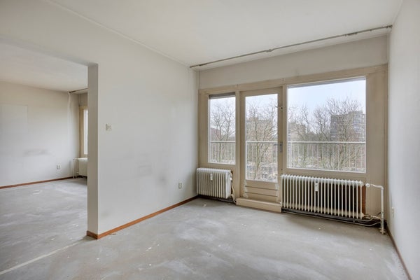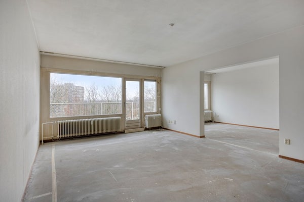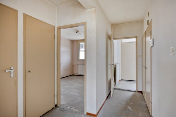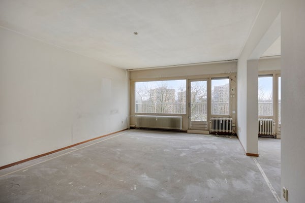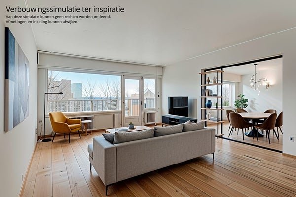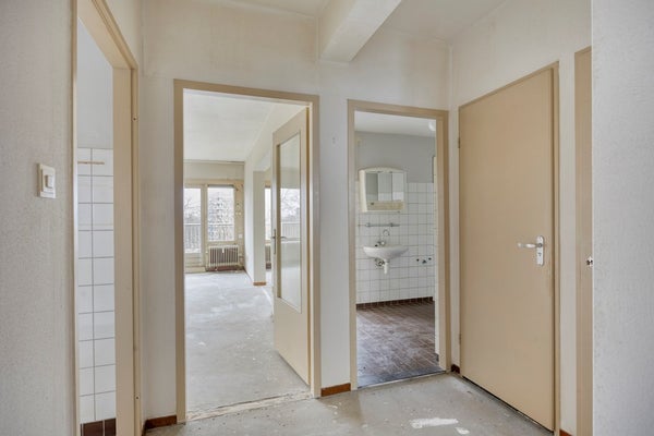 Bij binnenkomst kom je in een vestibule die directe toegang biedt tot een ruime hal, die dient als centrale spil van het appartement. Hier ligt de basis van wat je anders, groter of moderner kan maken. De woonkamer biedt al veel lichtinval, zodat je met je eigen creatieve inbreng er een echte eyecatcher van kan maken.