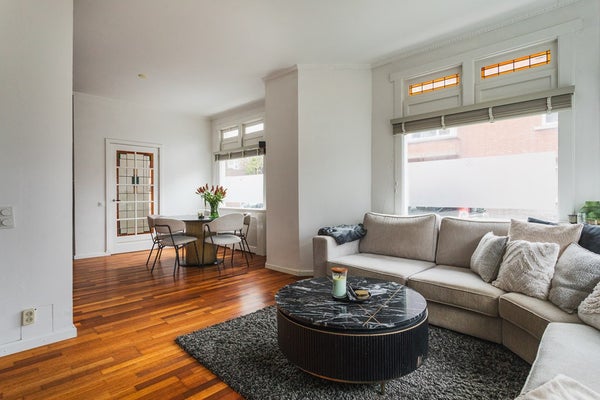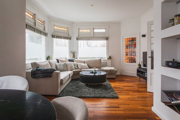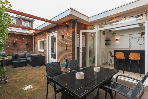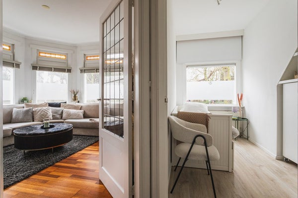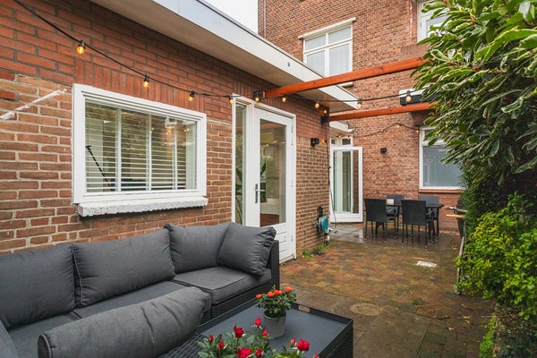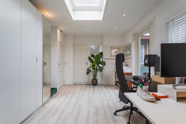 On a quiet corner in the sought-after Vruchtenbuurt you will find this surprisingly spacious and playfully laid-out 5-room ground-floor apartment, offering approx. 120 m² of living space, a sunny garden and an exceptionally large garage. Homes like this rarely come onto the market. Thanks to the clever combination of the main residence, intermediate section, rear extension and garage, this apartment offers a versatility that perfectly suits modern living, working from home, or a combination of both.