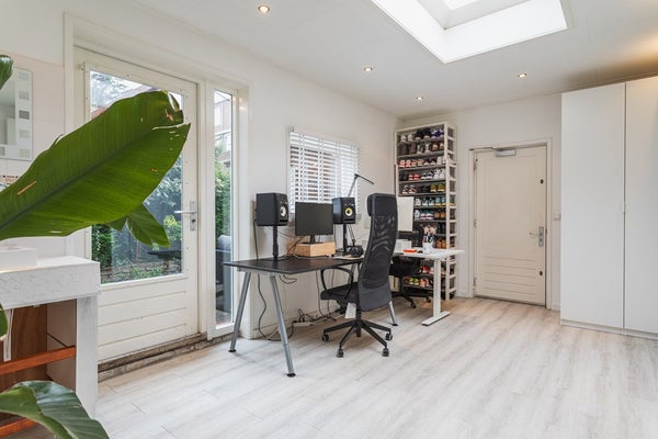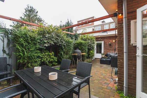 The northwest-facing back garden offers, especially by Vruchtenbuurt standards, a remarkable amount of privacy and is a lovely place to relax. Directly adjacent is the very spacious garage — ideal for parking, storage, a workshop or hobbies.