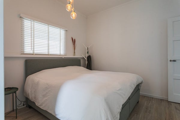 De achtertuin op het noordwesten biedt, zeker voor Vruchtenbuurt-begrippen, opvallend veel privacy en is een heerlijke plek om tot rust te komen. Direct aangrenzend ligt de zeer ruime garage — ideaal voor parkeren, opslag, een werkruimte of hobby’s.