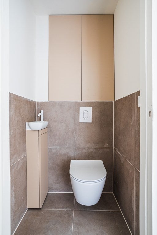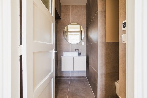 Via deze zijde bereik je ook de badkamer, uitgevoerd met douche en wastafel en voorzien van een tweede toilet.