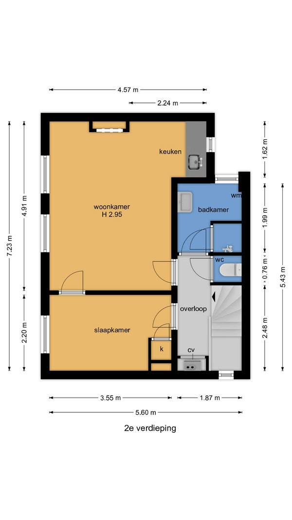 - De bovenwoning heeft een woonoppervlakte van 40 m² en beschikt over 2 kamers, waarvan 1 slaapkamer;