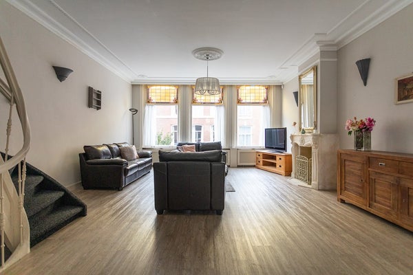 Spacious and bright three-level upper house (approx. 166 m²) with 4 bedrooms and two generous balconies/terraces, located right in the heart of the popular Zeeheldenkwartier. The property is well maintained and offers plenty of living space with a full living floor and two sleeping floors. The neighbourhood is known for its many cosy coffee bars, local shops and restaurants; the city centre, tram connections and schools are just around the corner.