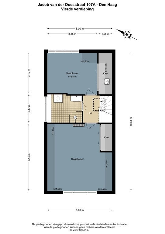 Vierde verdieping: nog twee verrassend ruime slaapkamers en een praktische wasruimte/berging.