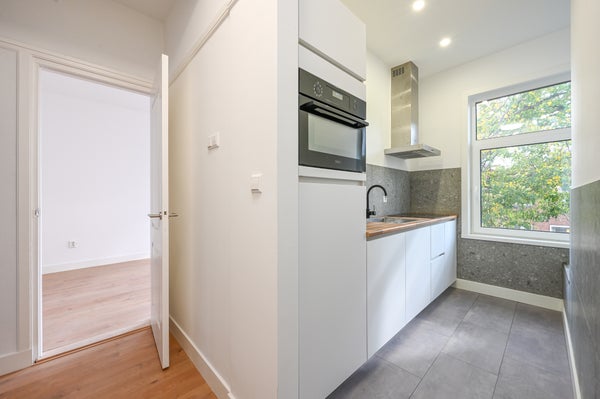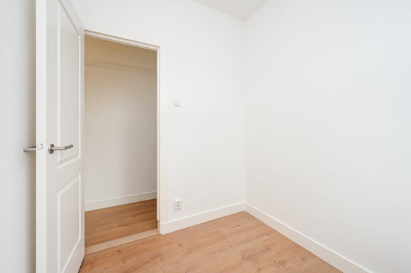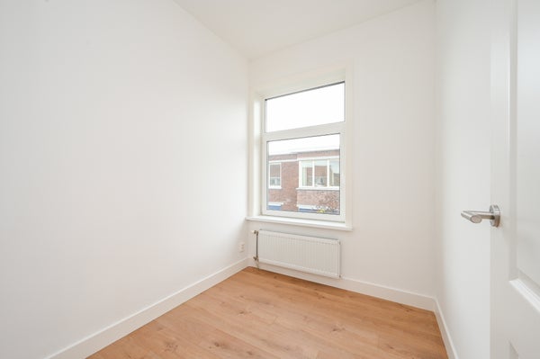 - De portiekwoning heeft een woonoppervlakte van 59 m² en beschikt over 3 kamers, waarvan 2 slaapkamers;