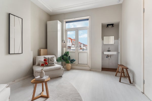 - De bovenwoning heeft een woonoppervlakte van 30 m² en beschikt over 2 kamers, waarvan 1 slaapkamer;
