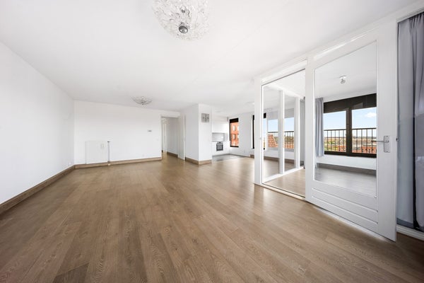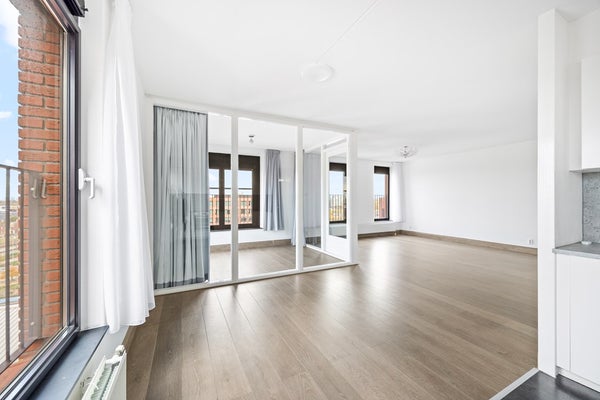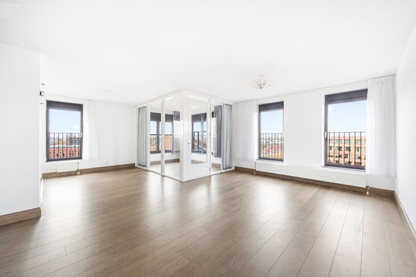 - De portiekflat heeft een woonoppervlakte van 115 m² en beschikt over 3 kamers, waarvan 2 slaapkamers;