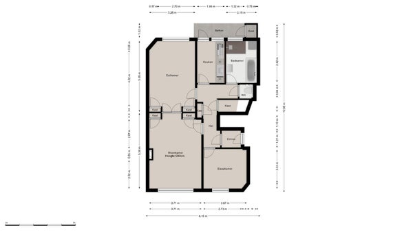 - De portiekflat heeft een woonoppervlakte van 72 m² en beschikt over 3 kamers, waarvan 2 slaapkamers;