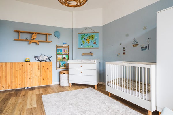 The first floor offers two spacious bedrooms and a large modern bathroom with underfloor heating, walk-in shower and bathtub — creating a comfortable and luxurious sleeping level for the family.