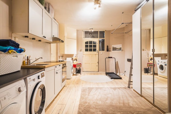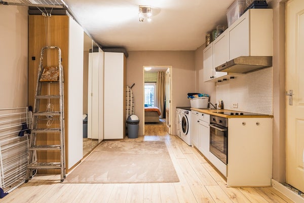 Souterrain met eigen entree, keuken en badkamer, geschikt als zelfstandige woonlaag