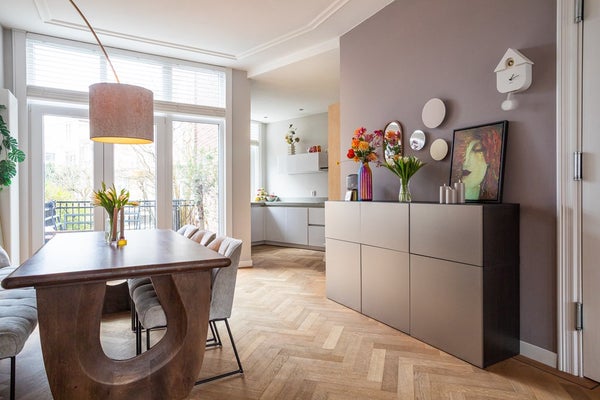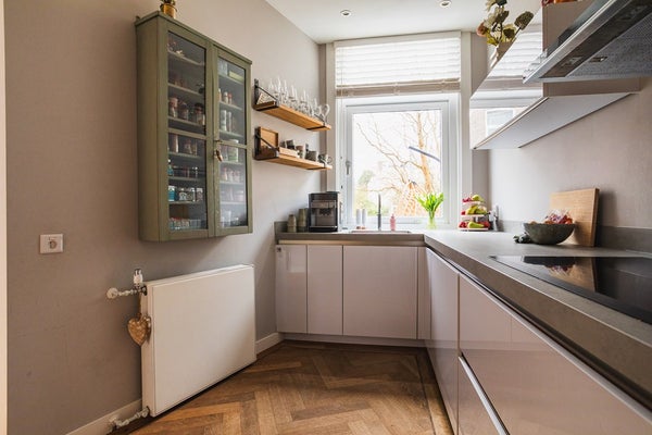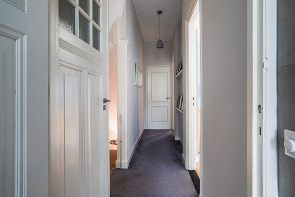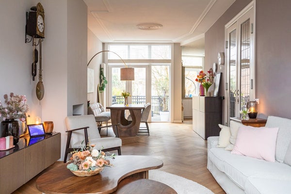 De woning heeft diverse authentieke details zoals glas in lood deuren, originele gerenoveerde binnendeuren, ornamenten in de woonkamer met visgraat parketvloer, gecombineerd met moderne elementen.
