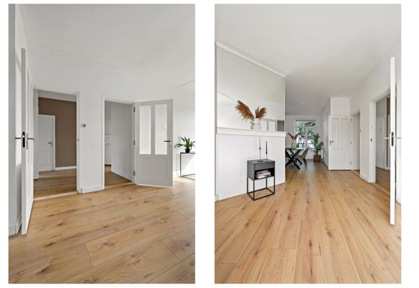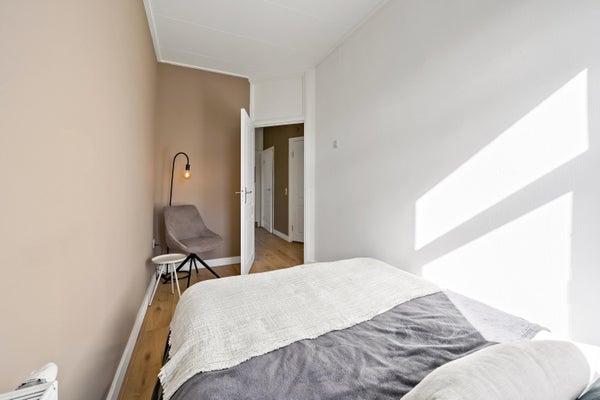 - De portiekwoning heeft een woonoppervlakte van 54 m² en beschikt over 3 kamers, waarvan 2 slaapkamers;