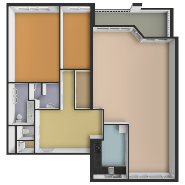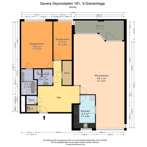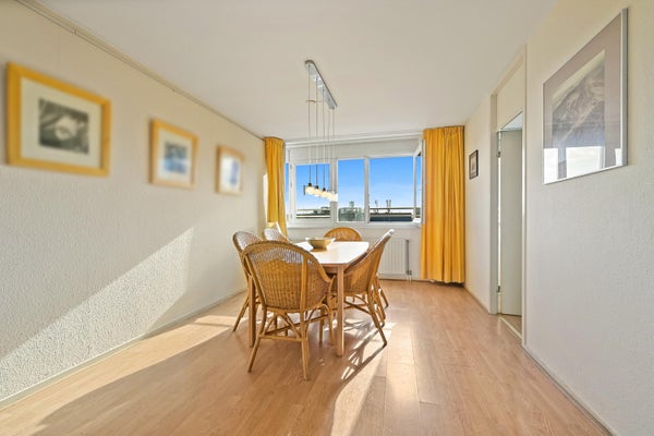- De portiekflat heeft een woonoppervlakte van 120 m² en beschikt over 3 kamers, waarvan 2 slaapkamers;