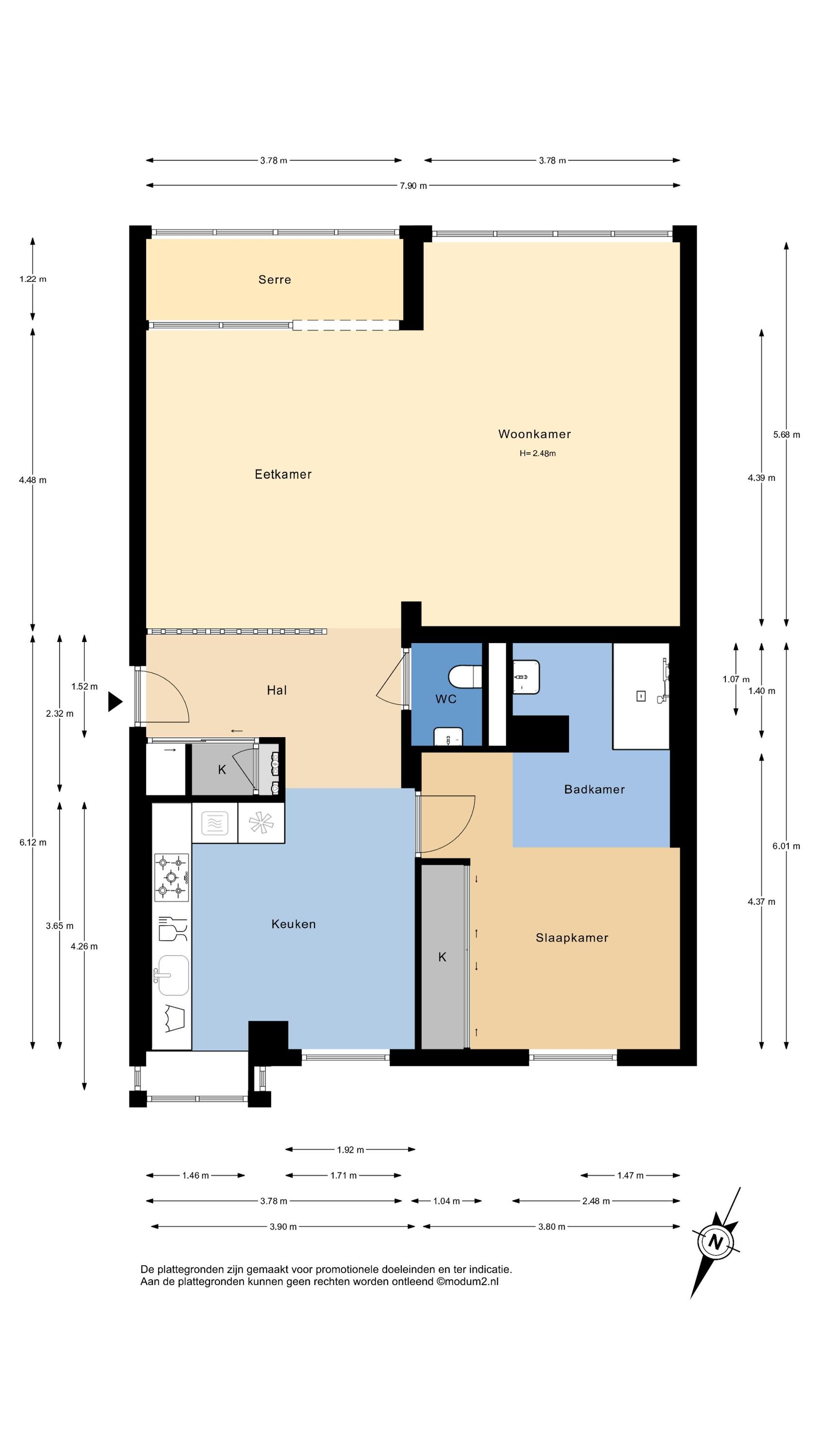 - De galerijflat heeft een woonoppervlakte van 95 m² en beschikt over 3 kamers, waarvan 1 slaapkamer;