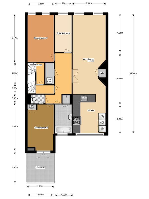 • De portiekwoning heeft een woonoppervlakte van 122 m² en beschikt over 4 kamers, waarvan 3 slaapkamers;