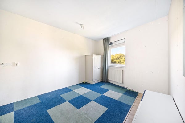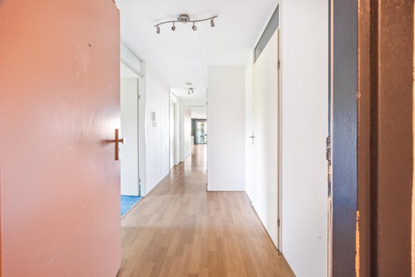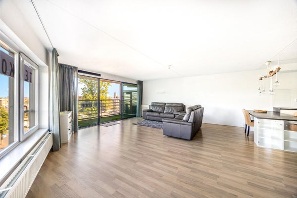• De portiekflat heeft een woonoppervlakte van 107 m² en beschikt over 4 kamers, waarvan 3 slaapkamers;