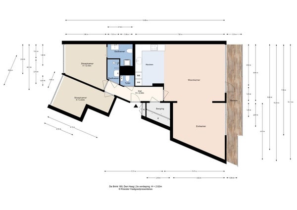 - De portiekflat heeft een woonoppervlakte van 96 m² en beschikt over 3 kamers, waarvan 2 slaapkamers;
