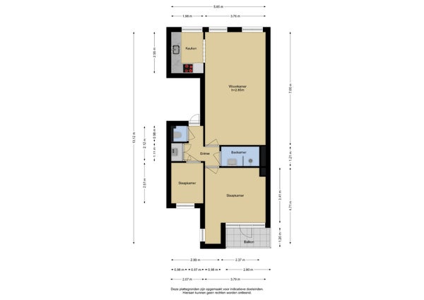 - De bovenwoning heeft een woonoppervlakte van 61 m² en beschikt over 3 kamers, waarvan 2 slaapkamers;