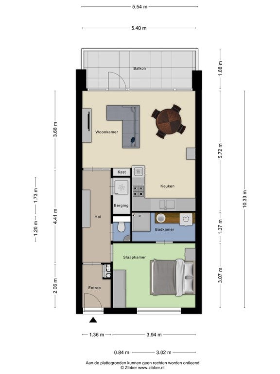 Je betreedt het appartement via een ruime hal met toegang tot alle vertrekken en de meterkast.