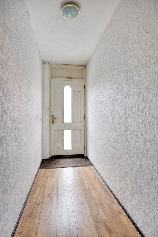 Entree op straat niveau, entree appartement, gang met meterkast, toilet met fontein en 1e slaapkamer gelegen aan de voorzijde, trapopgang naar de 2e woonlaag