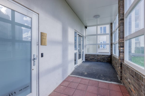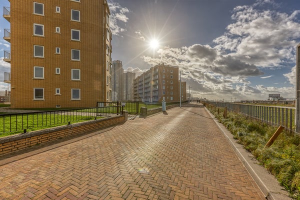Via het entree aan de Zeekantzijde met brievenbussen en bellentableau bereikt u met lift of trap de vijfde verdieping. Aan de voorzijde van het complex bevindt zich de toegang voor de auto. Vanaf het parkeerdek kunt u direct via de lift naar boven. Via een galerij is er toegang tot het appartement.