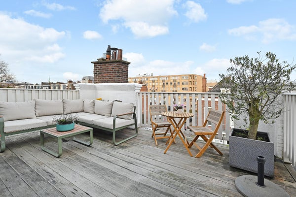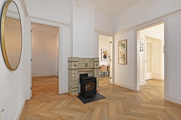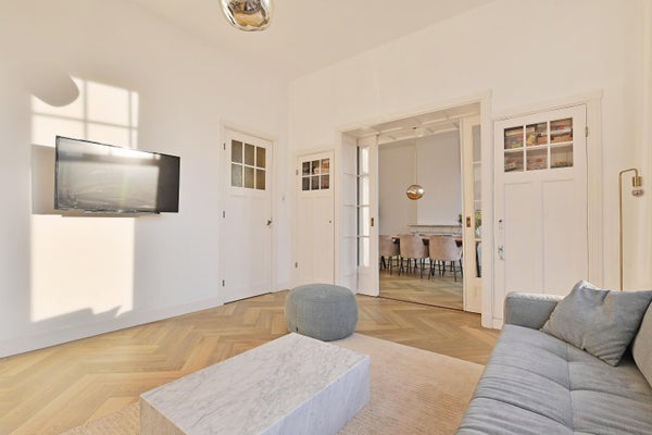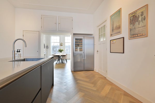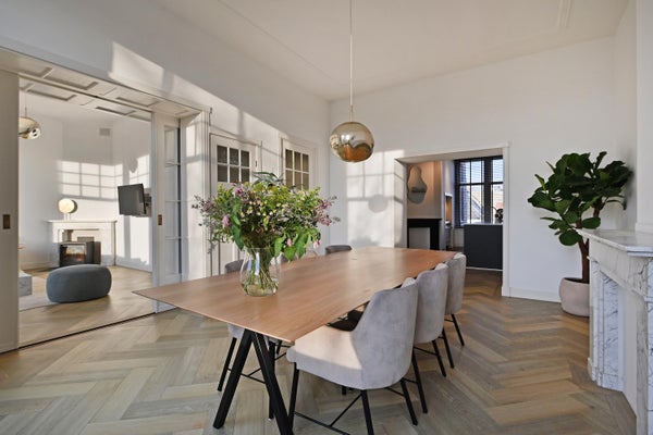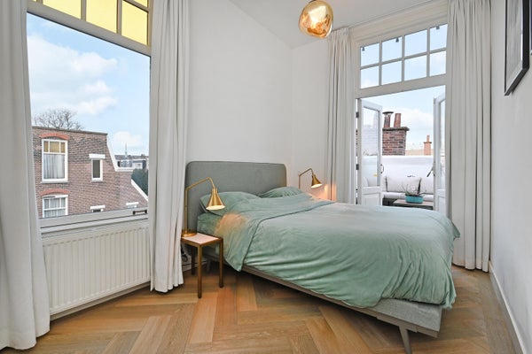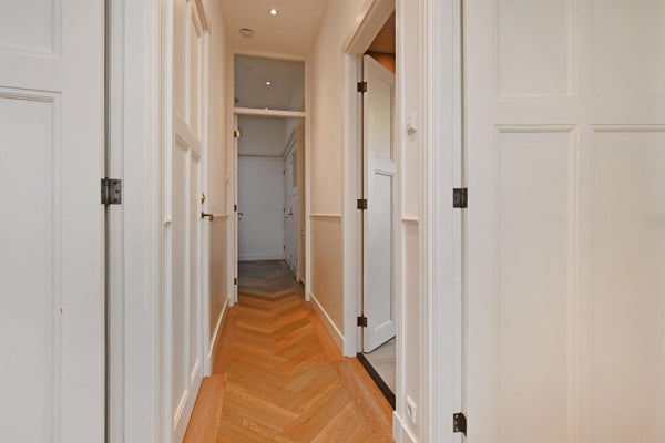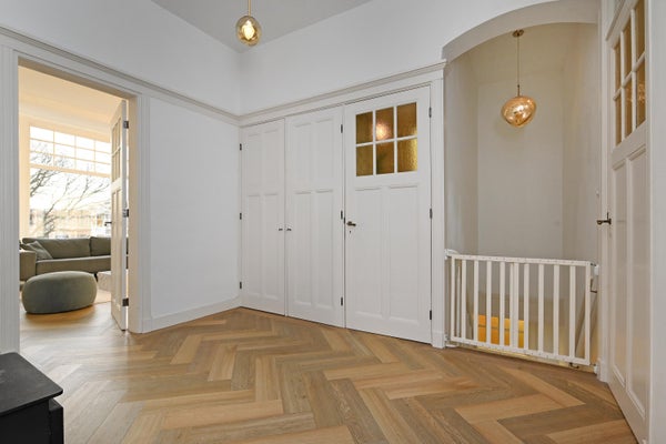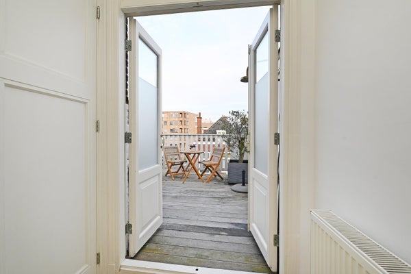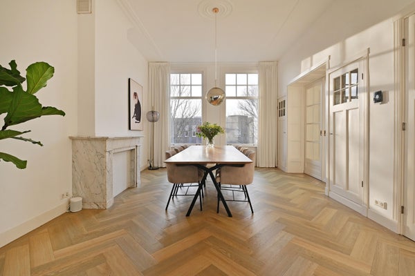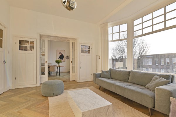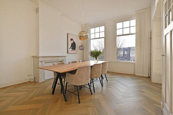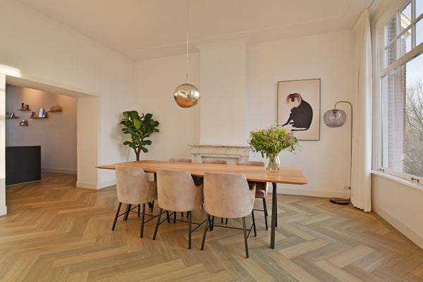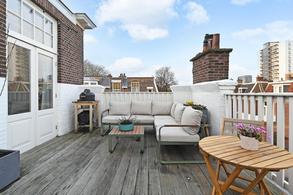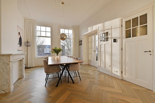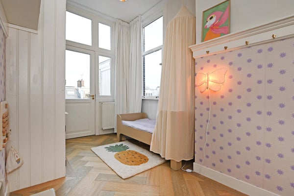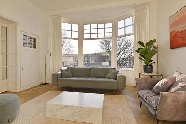 Dit karakteristieke hoekappartement van circa 142 m², gelegen aan de Pijnboomstraat in de mooie Bomenbuurt, heeft 6 kamers, waaronder 3 slaapkamers en 1 kledingkamer. De lichte L-vormige woon-/eetkamer ensuite en het grote terras van ongeveer 3.40 x 2.20 m bieden een prettig uitzicht. Het appartement is in 2017 gerenoveerd en ligt op fietsafstand van de binnenstad en de Haagse stranden. De indeling omvat een ruime hal met originele schouw, een keuken met apparatuur, en een badkamer met vloerverwarming en inloopdouche. De hoofdslaapkamer heeft een inbouwkast en toegang tot het terras. Daarnaast zijn er houten kozijnen met HR++ glas, een actieve VvE met een maandelijkse bijdrage van € 180,26, en voorzieningen zoals vloerverwarming en een Nefit combiketel.