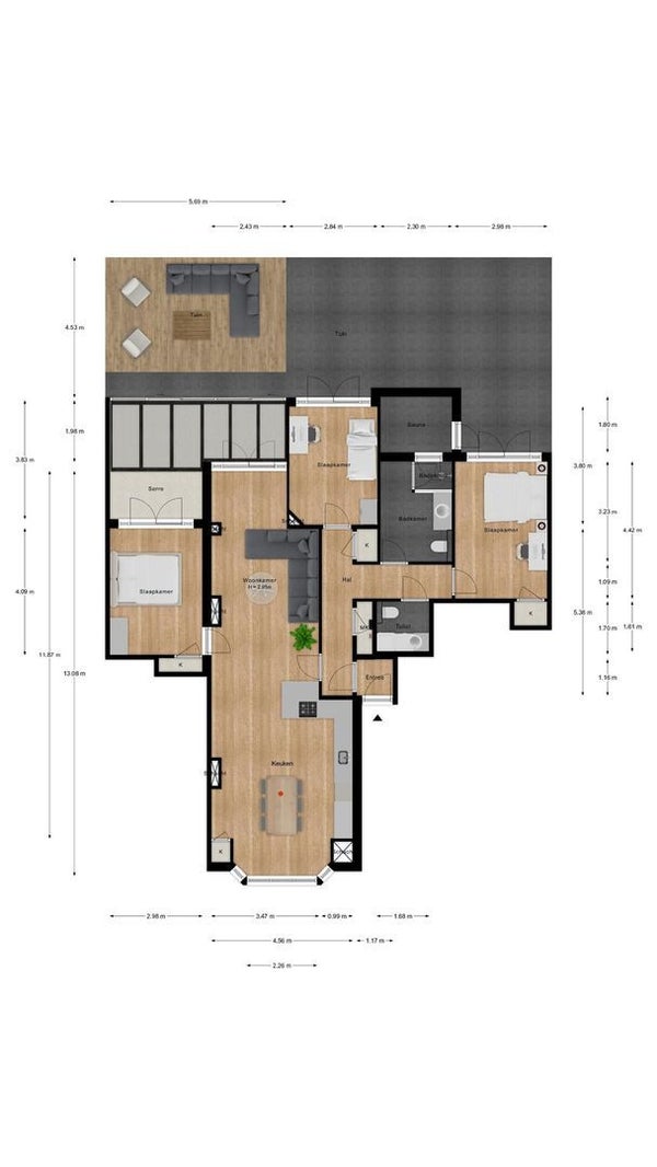 - De galerijflat heeft een woonoppervlakte van 117 m² en beschikt over 4 kamers, waarvan 3 slaapkamers;