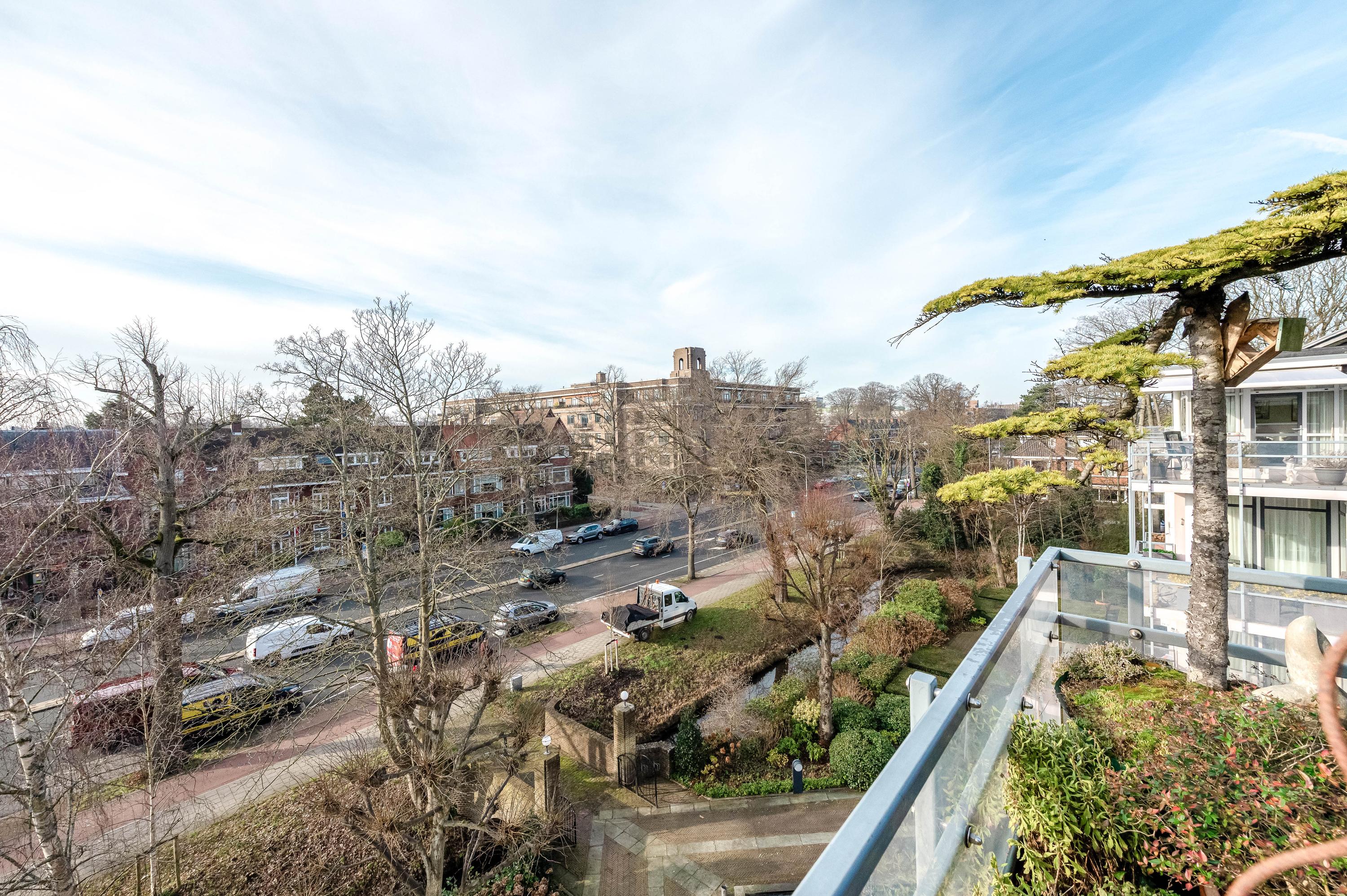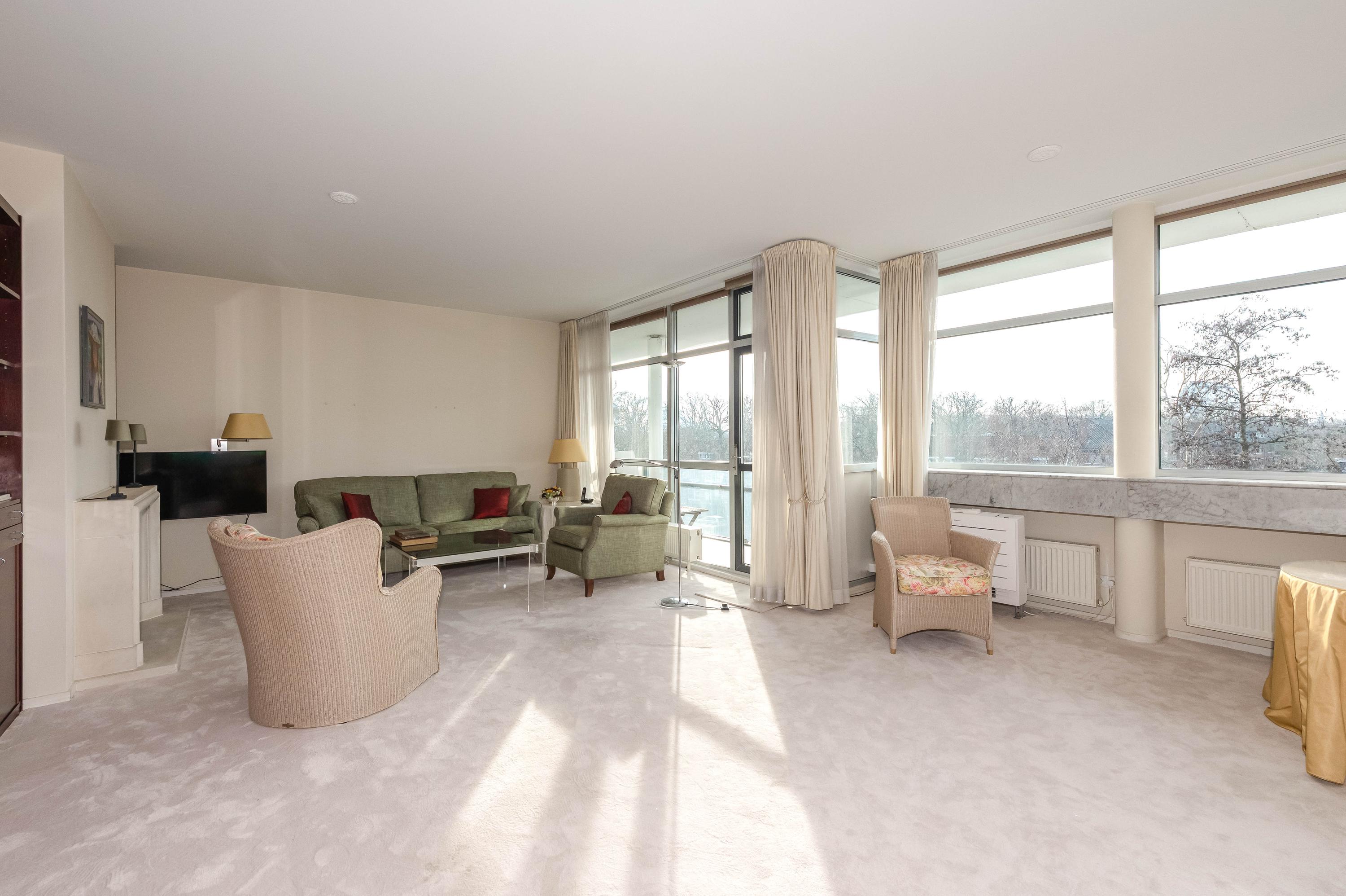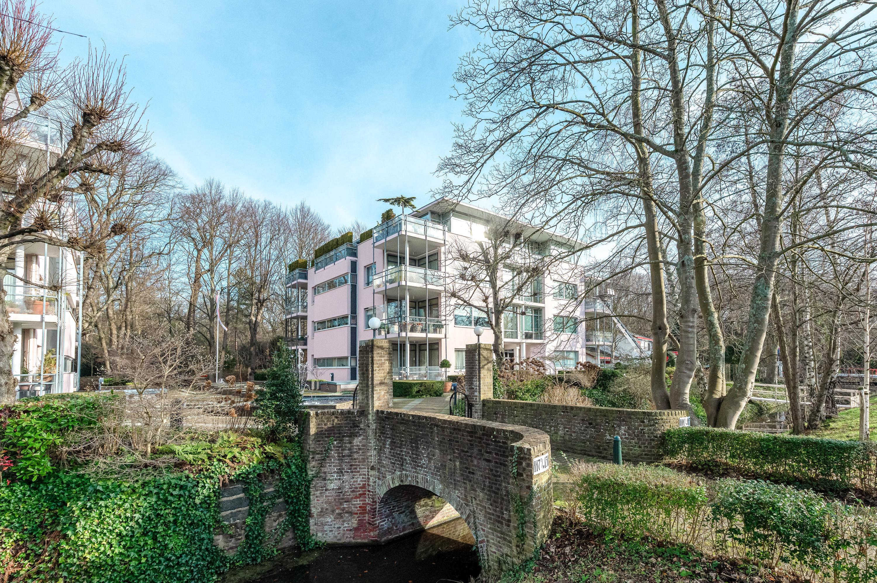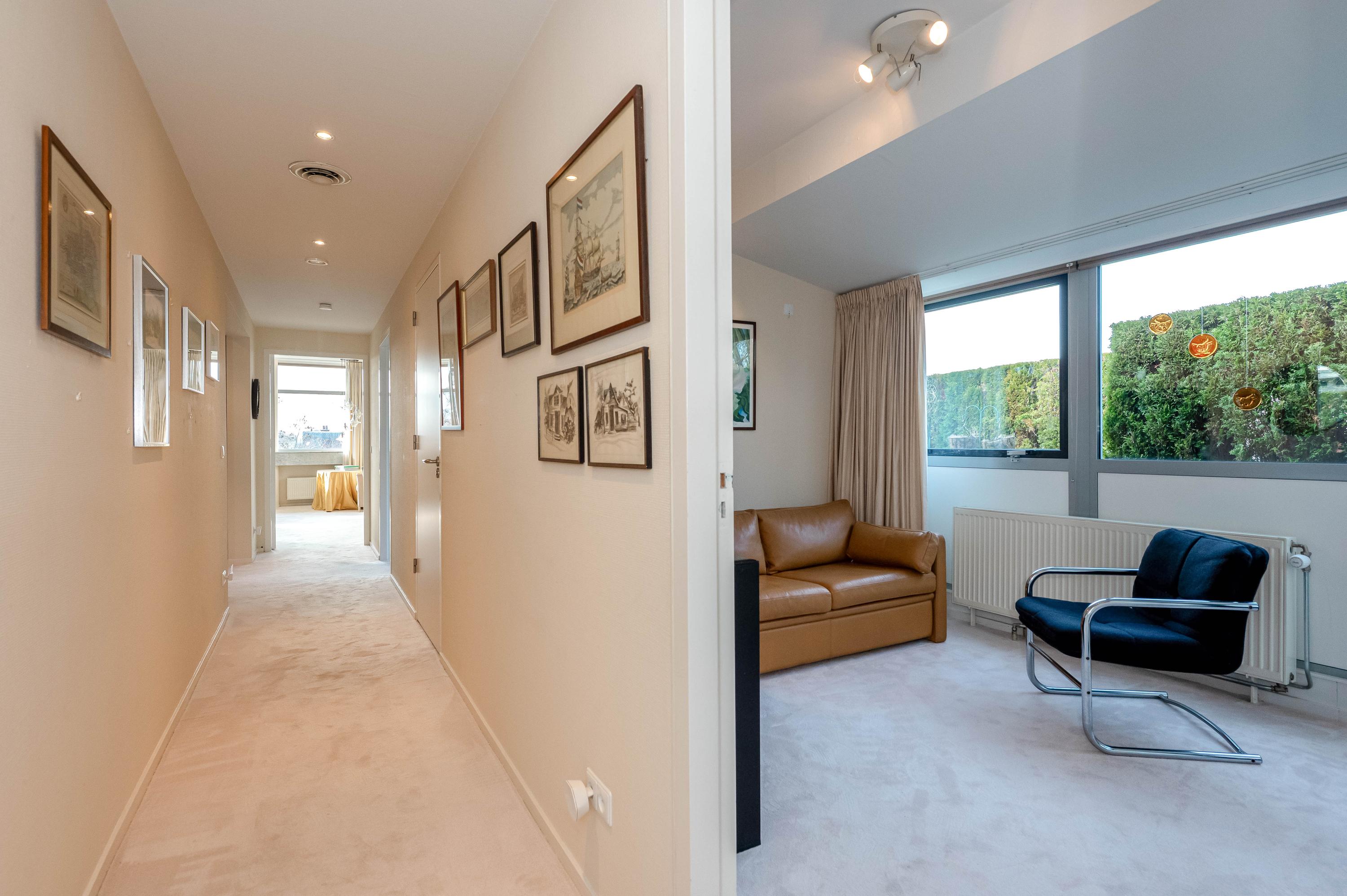 In het moderne appartementencomplex Bosjes van Zanen bevindt zich dit 5-kamerpenthouse van ca. 130 m², met 3 slaapkamers en 2 verbonden terrassen. U hebt ook toegang tot uw eigen parkeerplaats in de onderliggende parkeergarage en een bijzonder praktische berging. Het appartement is gelegen op een afgesloten terrein dat bereikbaar is via een brug, met uitzicht op het fraaie Park Clingendael. Binnen loop- en fietsafstand vindt u groen, openbaar vervoer en winkels. Bij binnenkomst via de centrale hal leidt de lift naar de derde verdieping. De ruime hal geeft toegang tot de woonkamer met open haard, de keuken en de slaapkamers. De master bedroom heeft een badkamer en er is een gastenbadkamer aanwezig. Dit penthouse biedt comfort met een cv-ketel uit 2023 en mechanische ventilatie.