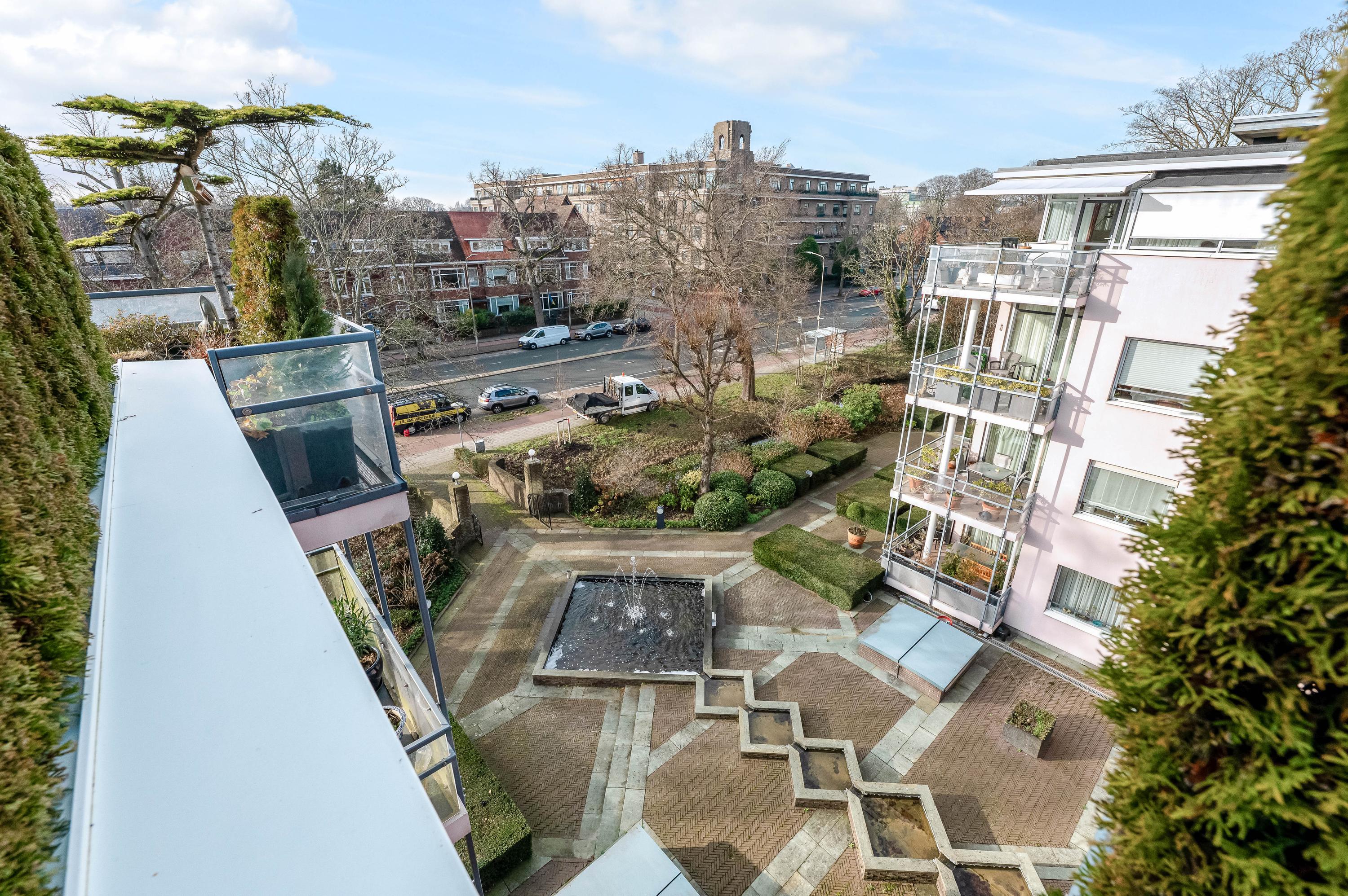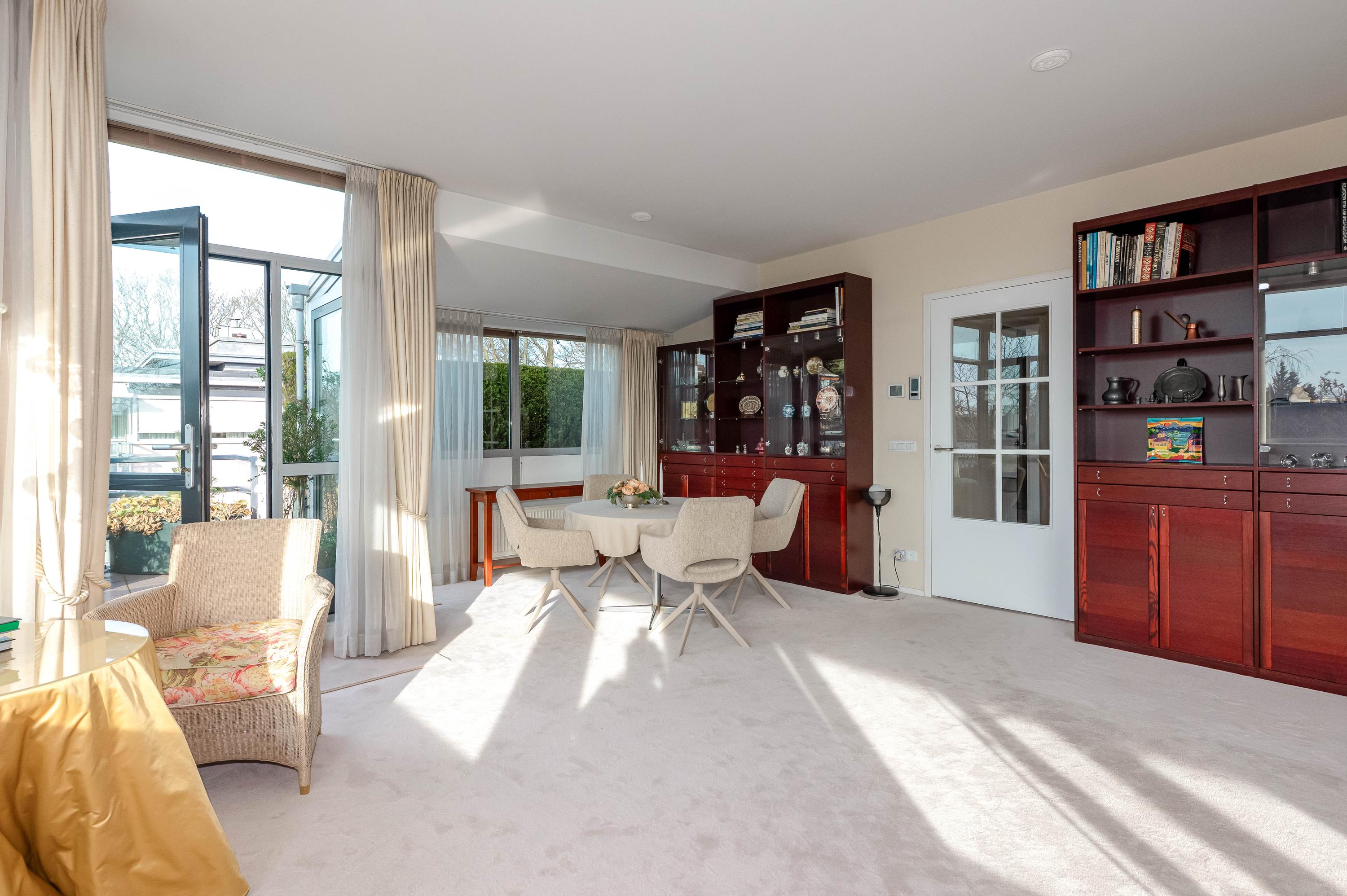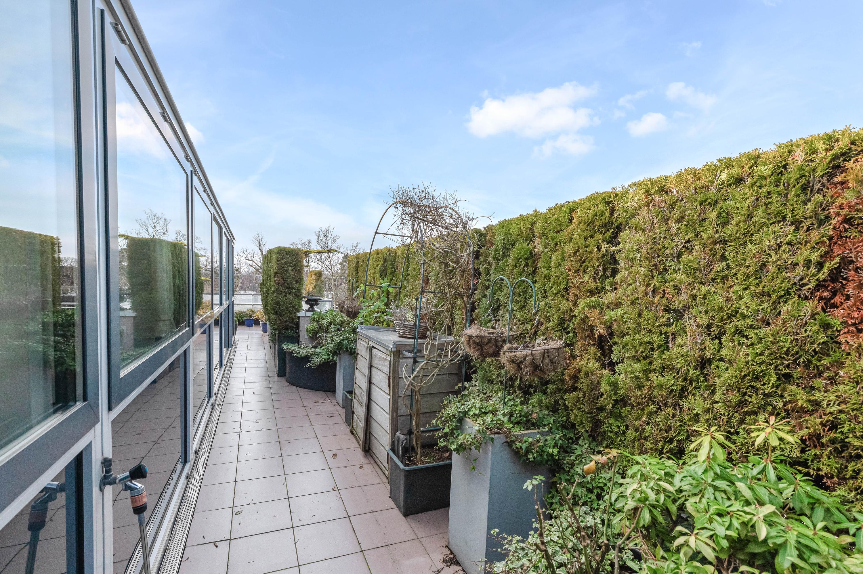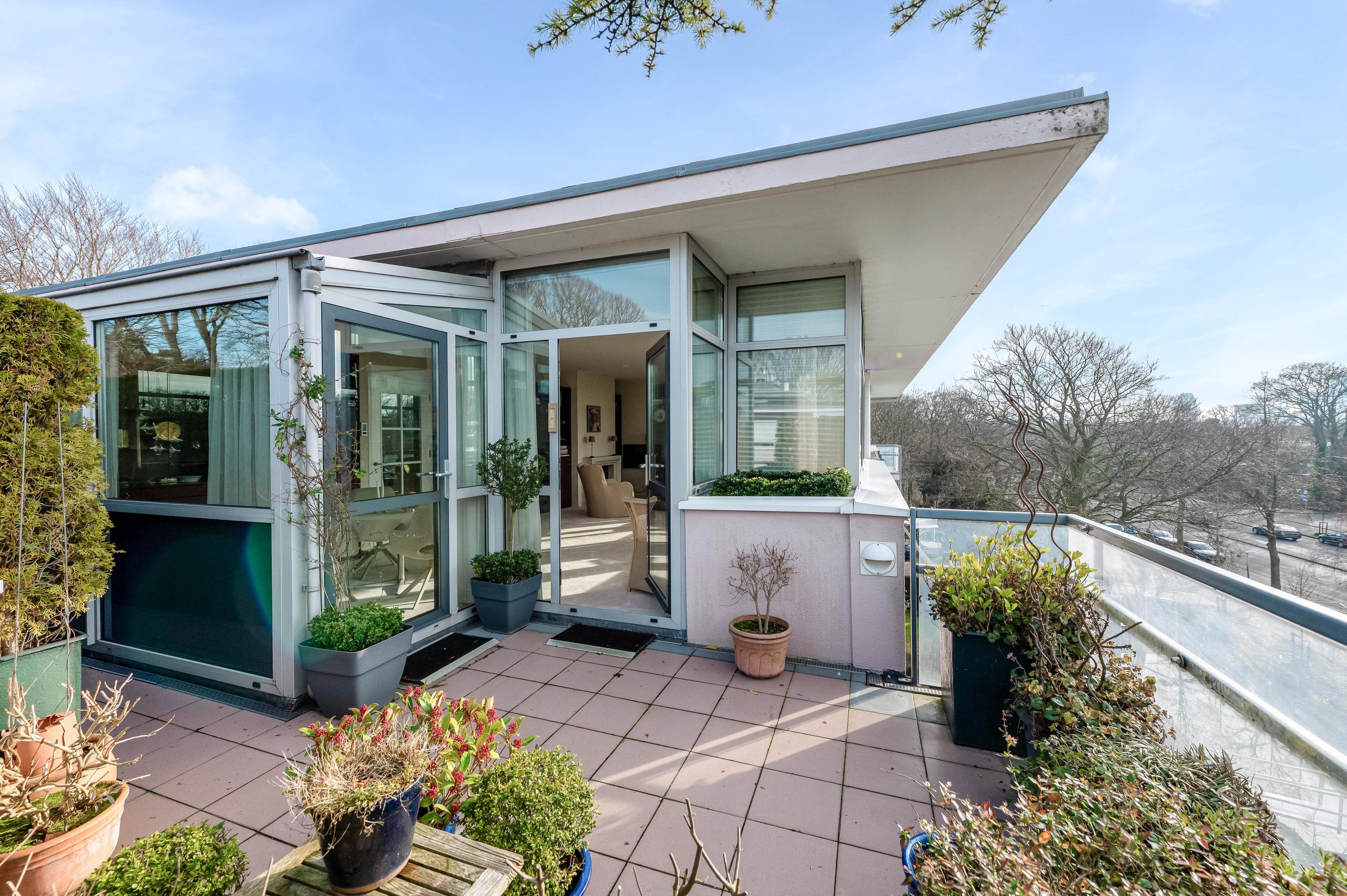 In het moderne appartementencomplex Bosjes van Zanen bevindt zich dit 5-kamerpenthouse van ca. 130 m², met 3 slaapkamers en 2 verbonden terrassen. U hebt ook toegang tot uw eigen parkeerplaats in de onderliggende parkeergarage en een bijzonder praktische berging. Het appartement is gelegen op een afgesloten terrein dat bereikbaar is via een brug, met uitzicht op het fraaie Park Clingendael. Binnen loop- en fietsafstand vindt u groen, openbaar vervoer en winkels. Bij binnenkomst via de centrale hal leidt de lift naar de derde verdieping. De ruime hal geeft toegang tot de woonkamer met open haard, de keuken en de slaapkamers. De master bedroom heeft een badkamer en er is een gastenbadkamer aanwezig. Dit penthouse biedt comfort met een cv-ketel uit 2023 en mechanische ventilatie.