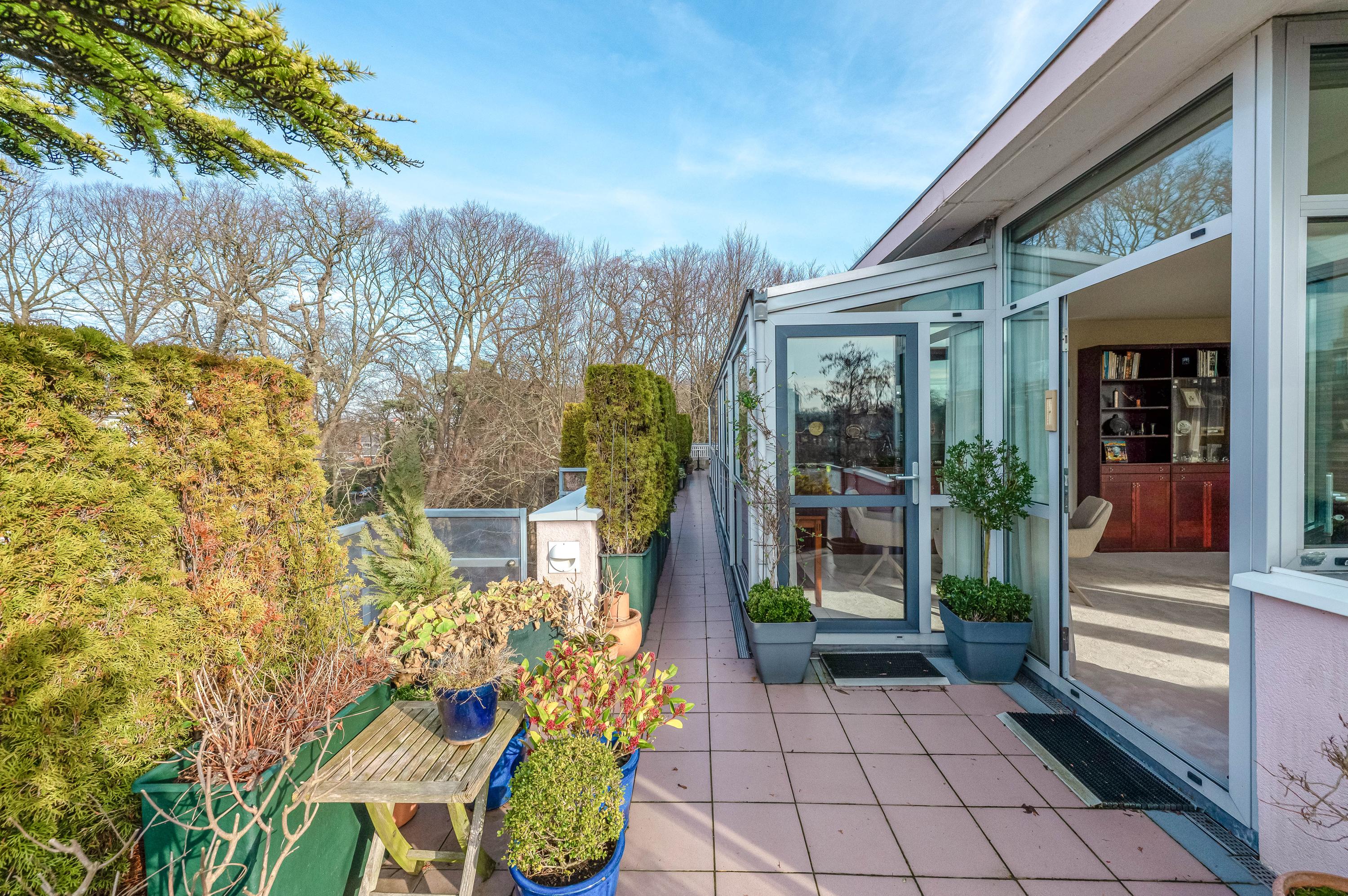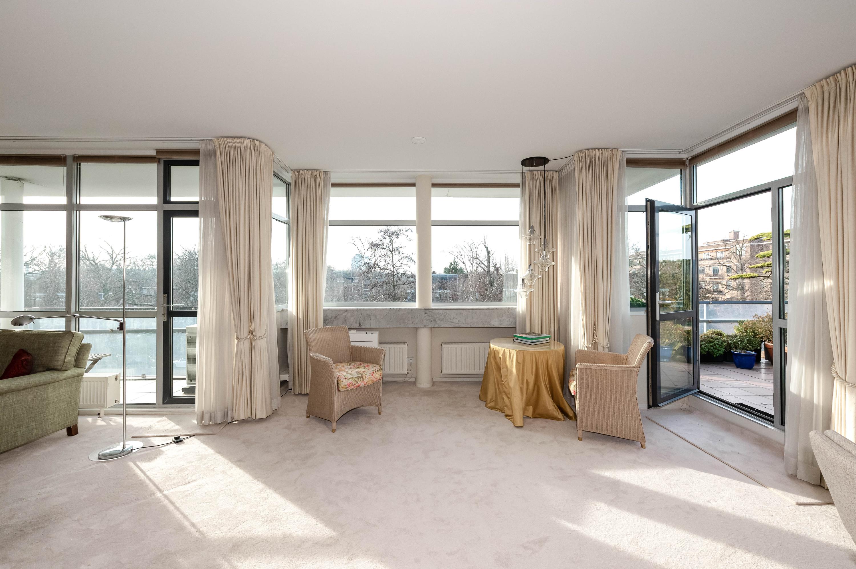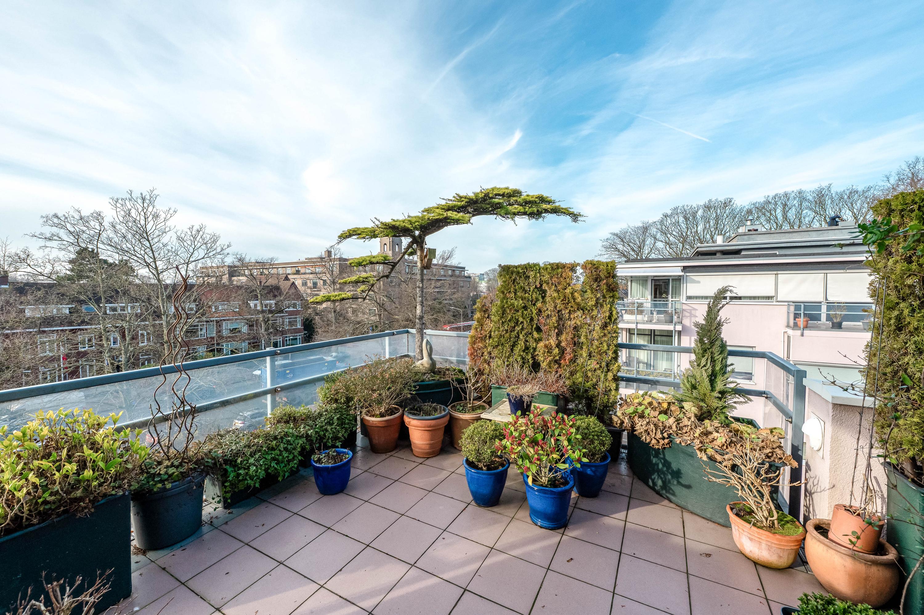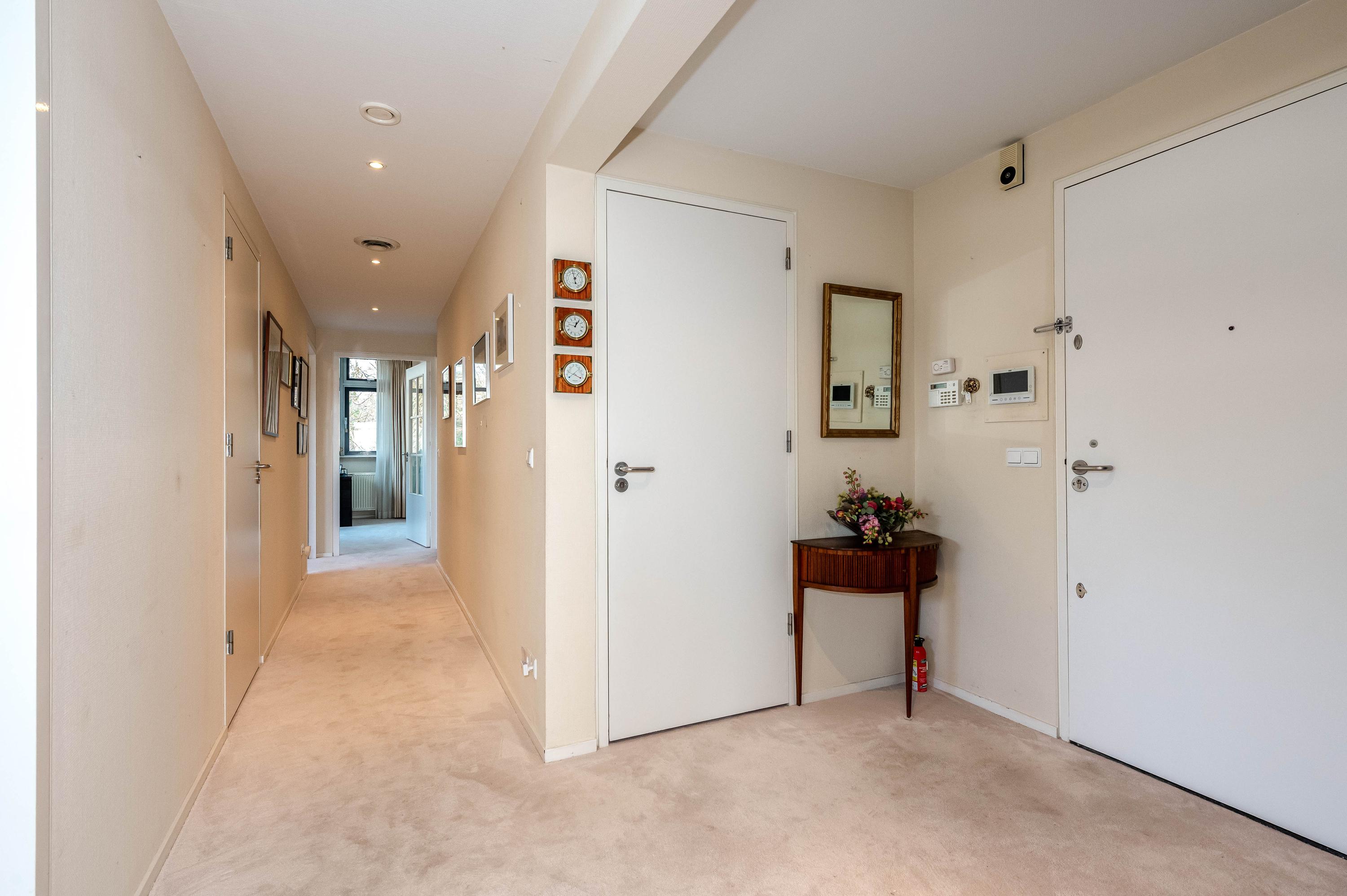 In het moderne appartementencomplex Bosjes van Zanen bevindt zich dit 5-kamerpenthouse van ca. 130 m², met 3 slaapkamers en 2 verbonden terrassen. U hebt ook toegang tot uw eigen parkeerplaats in de onderliggende parkeergarage en een bijzonder praktische berging. Het appartement is gelegen op een afgesloten terrein dat bereikbaar is via een brug, met uitzicht op het fraaie Park Clingendael. Binnen loop- en fietsafstand vindt u groen, openbaar vervoer en winkels. Bij binnenkomst via de centrale hal leidt de lift naar de derde verdieping. De ruime hal geeft toegang tot de woonkamer met open haard, de keuken en de slaapkamers. De master bedroom heeft een badkamer en er is een gastenbadkamer aanwezig. Dit penthouse biedt comfort met een cv-ketel uit 2023 en mechanische ventilatie.
