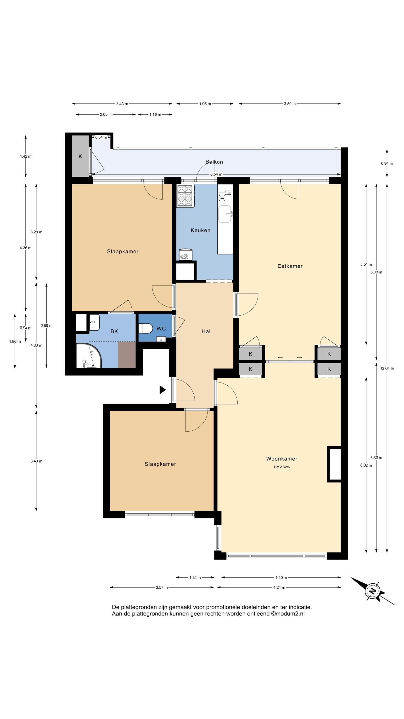 - De galerijflat heeft een woonoppervlakte van 98 m² en beschikt over 4 kamers, waarvan 2 slaapkamers;