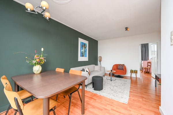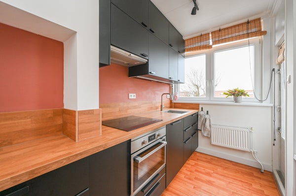 You definitely have to come and see this one! Are you looking for an attractive (TOP!) flat with sunny balcony (southwest)? Then look no further, because we are selling Zuiderparklaan 333. The flat is approx. 59 m2, features a spacious, bright living/dining room with modern semi-open kitchen with various built-in appliances (fridge, induction hob, dishwasher, (combi) microwave and extractor hood), sunny balcony facing south-west, two bedrooms and bathroom with walk-in shower and washbasin furniture and a separate toilet. The house is heated by a central heating boiler (Intergas, built ca. 2020), is fully equipped with plastic / wooden window frames with double glazing and has an energy label F. The owners association is active (1/3rd share) with a monthly contribution of € 100, - (reserve fund, annual meeting, MJOP and collective building insurance). Located on leasehold land (issued in perpetuity, half-yearly canon is € 155,93), near shops on Apeldoornselaan and Dierenselaan and the Zuiderpark, it is also conveniently located to public transport and roads. Absolutely worth a viewing!