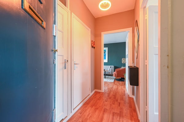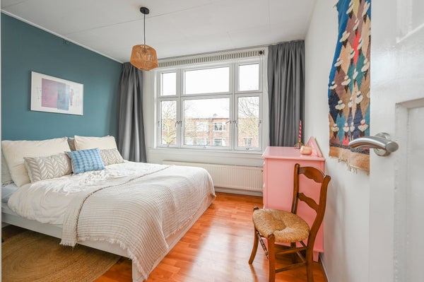 - De portiekwoning heeft een woonoppervlakte van 59 m² en beschikt over 3 kamers, waarvan 2 slaapkamers;
