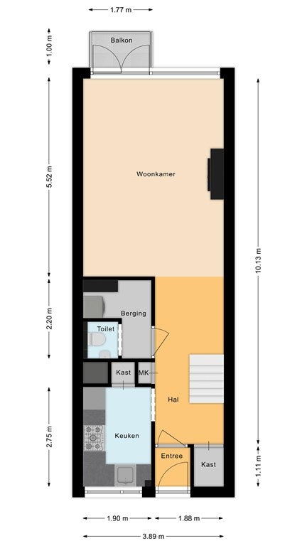 - De maisonnette heeft een woonoppervlakte van 84 m² en beschikt over 3 kamers, waarvan 2 slaapkamers;