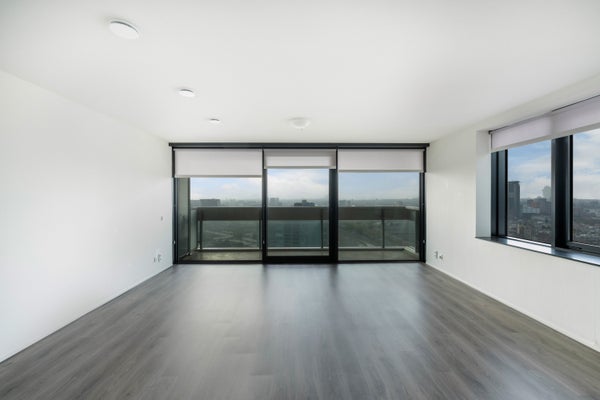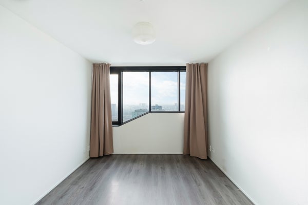 - De portiekflat heeft een woonoppervlakte van 103 m² en beschikt over 3 kamers, waarvan 2 slaapkamers;