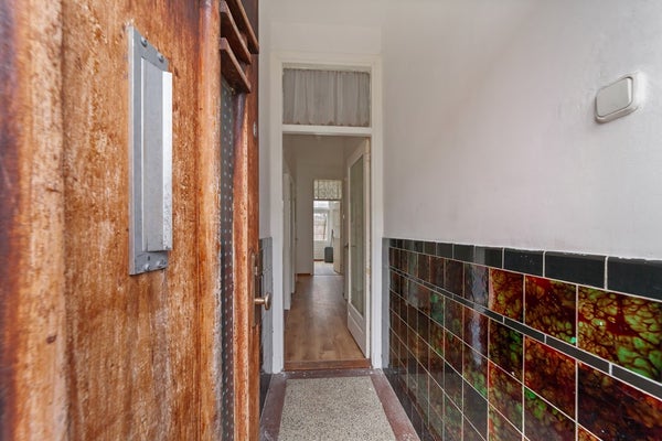 Entree op straatniveau, tochtportaal, hal met toegang tot de voorgelegen slaapkamer met vaste kast (meterkast) en kruipruimte.