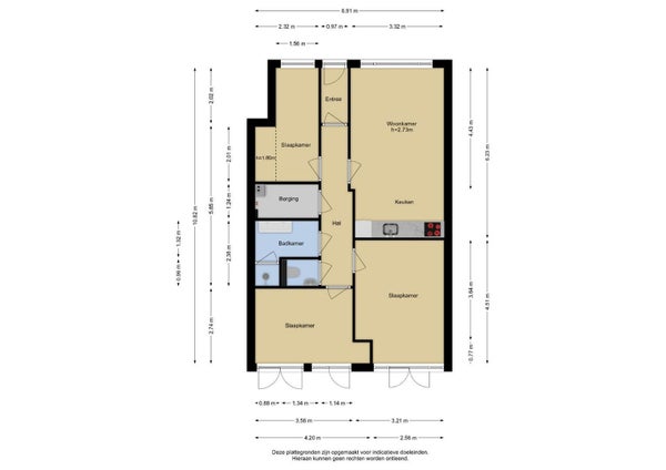 - De galerijflat heeft een woonoppervlakte van 73 m² en beschikt over 4 kamers, waarvan 3 slaapkamers;