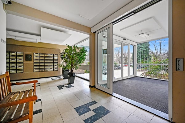 Layout: Entrance with doorbells, mailboxes, and intercom system. Secure central hall with elevators and staircase. Apartment entrance, hallway with a spacious built-in storage cupboard with washer and dryer connections. A door leads to the bright living/dining room with large windows. The south-facing apartment also features sun blinds. French doors open onto the lovely balcony. The semi-open kitchen is equipped with a dishwasher, refrigerator, freezer, combination microwave oven, induction hob, extractor hood, and sink. The bathroom features a shower, sink, toilet, and heated towel rail.