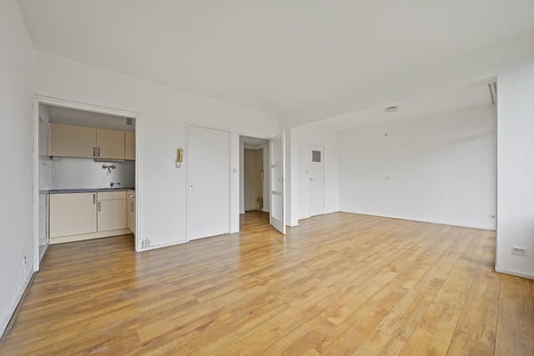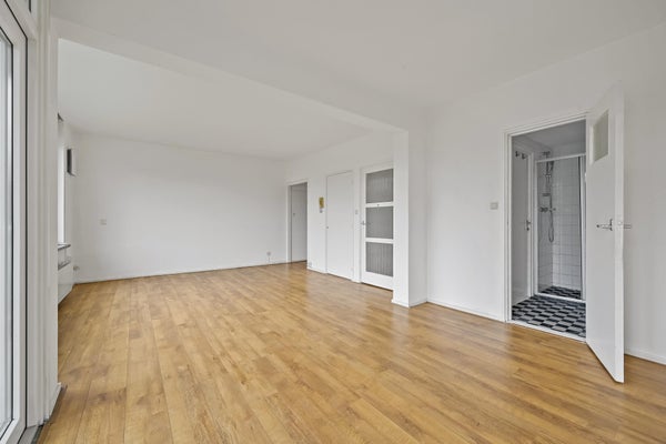 Indeling: Entree met bellentableau, brievenbussen en intercomsysteem. Afgesloten centrale hal met liften en trappenhuis. Entree appartement, hal met vaste ruime opbergkast met wasmachine en droger aansluiting, via deur toegang tot de lichte woon-/eetkamer met grote raampartij. Het appartement is op het zuiden gelegen en beschikt tevens over zonwering. Via openslaande deuren toegang tot het heerlijke balkon. half open keuken voorzien van vaatwasser, koelkast, vriezer, oven combi-magnetron, kookplaat (inductie), afzuigkap en spoelbak. Badkamer voorzien van een douche, wastafel, toilet en handdoekradiator.