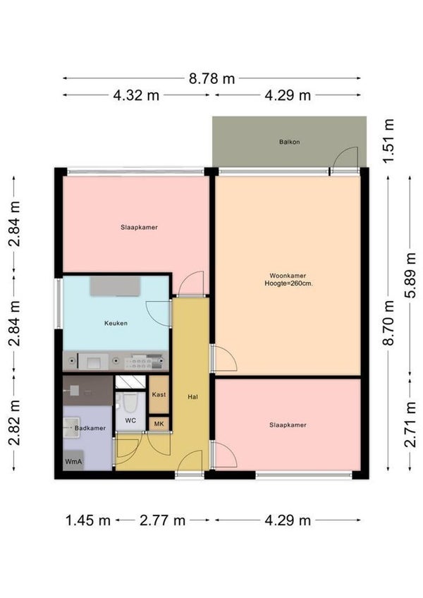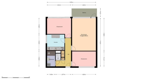 - De galerijflat heeft een woonoppervlakte van 76 m² en beschikt over 3 kamers, waarvan 2 slaapkamers;