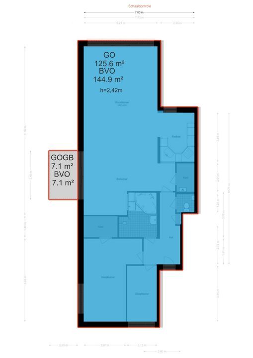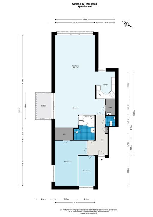 - De galerijflat heeft een woonoppervlakte van 125 m² en beschikt over 3 kamers, waarvan 2 slaapkamers;