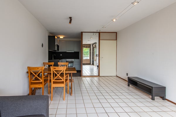 - De portiekflat heeft een woonoppervlakte van 60 m² en beschikt over 2 kamers, waarvan 1 slaapkamer;