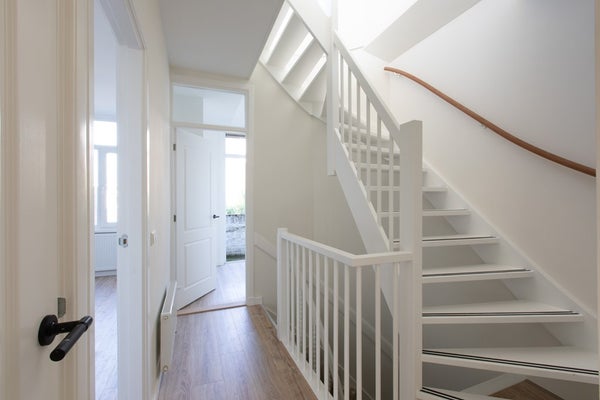 Begane grond: Via de gemeenschappelijke Haagse portiektrap ga je naar de eerste etage.